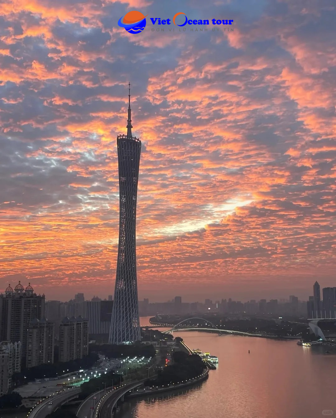 - Check-in cầu Hải Tâm: cây cầu đi bộ biểu tượng mới của Quảng Châu bắc qua dòng Châu Giang. Với thiết kế cong uốn mềm mại như dải lụa, hệ thống đèn LED đổi màu rực rỡ.